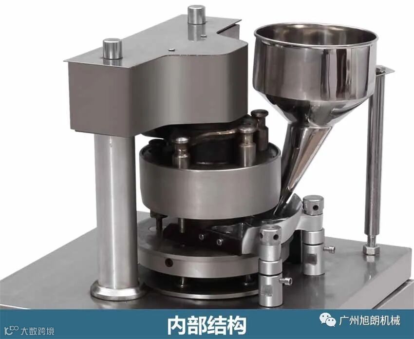 旋转式压片机有XYP-5、XYP-7、XYP-9三种规格,分别配有5、7、9副冲模,每副冲模由上冲、中模、下冲三个部件组成。其中,上冲和下冲的结构相似,冲头直径也相等,上、下冲的冲头和中模的模孔相配合,可以在中模孔中自由上下滑动。旋转式压片机的冲模是怎么安装的呢?冲模安装前,需先拆卸料斗、加粉器、加料器等零部件,并将各副冲模擦拭干净,按如下步骤进行安装: