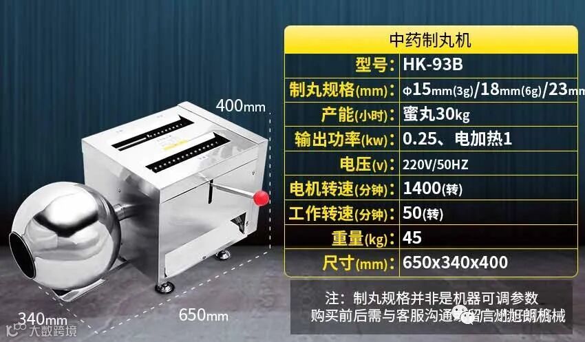 新型高效制丸机改掉了之前设备上比较笨重的外观,采用简洁大方的外形,可以不用再使用抛光机。制丸效率也比普通的制丸机要快5-10倍,具有直接出条,更具有辅助揉药团功能,而且揉出的药团也更具有可塑性,解决了揉药难问题。其次制丸可以更换不同大小药丸模具,可以满足只不同规格的药丸。