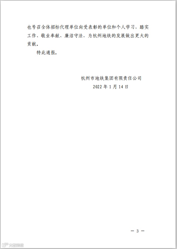 这里还有杭州市地铁集团寄来的关于对2021年度优秀招标代理单位及个人进行表彰的通报,地铁集团根据年度工作量、工作质量以及响应及时性,经综合打分及民主评议,对国信国际工程咨询集团浙江分公司及项目负责人叶璐、项目经理陈军、王碧辉等进行通报表彰。