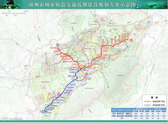 赣州市轨道交通第一轮建设规划共2条线,分别为赣州市轨道交通1号线及3号线,项目总投资估算约350亿元。
