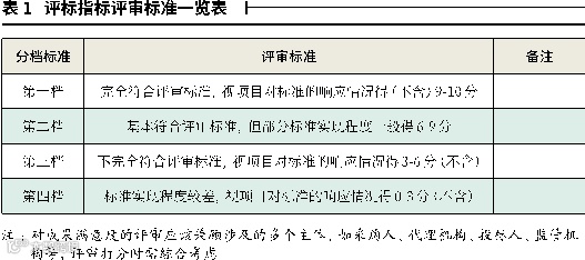 每个具体评价指标需依据评价标准分档进行评审打分,评价指标体系中的评价标准是最理想状态的标准,具体评审打分档次设计见表1。