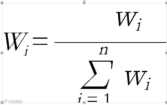 其中,i为一层评价指标的序列号,Wi为第i个一层评价指标的权重值,wi为评价专家对第i个一层评价指标因素相对重要性赋值。
