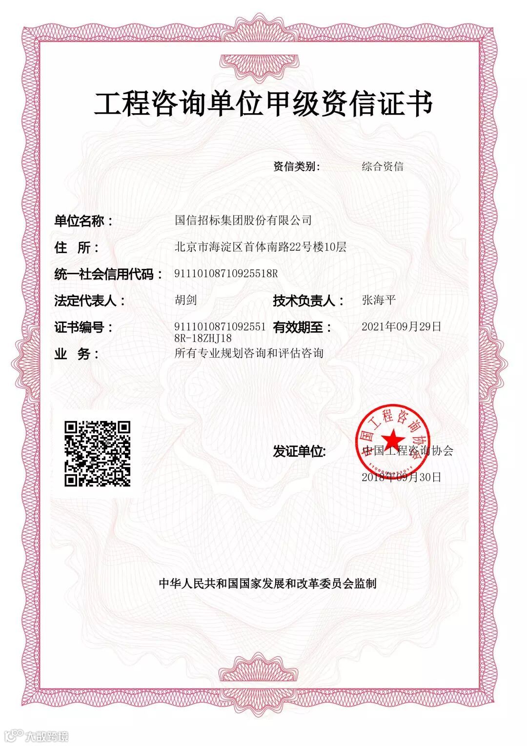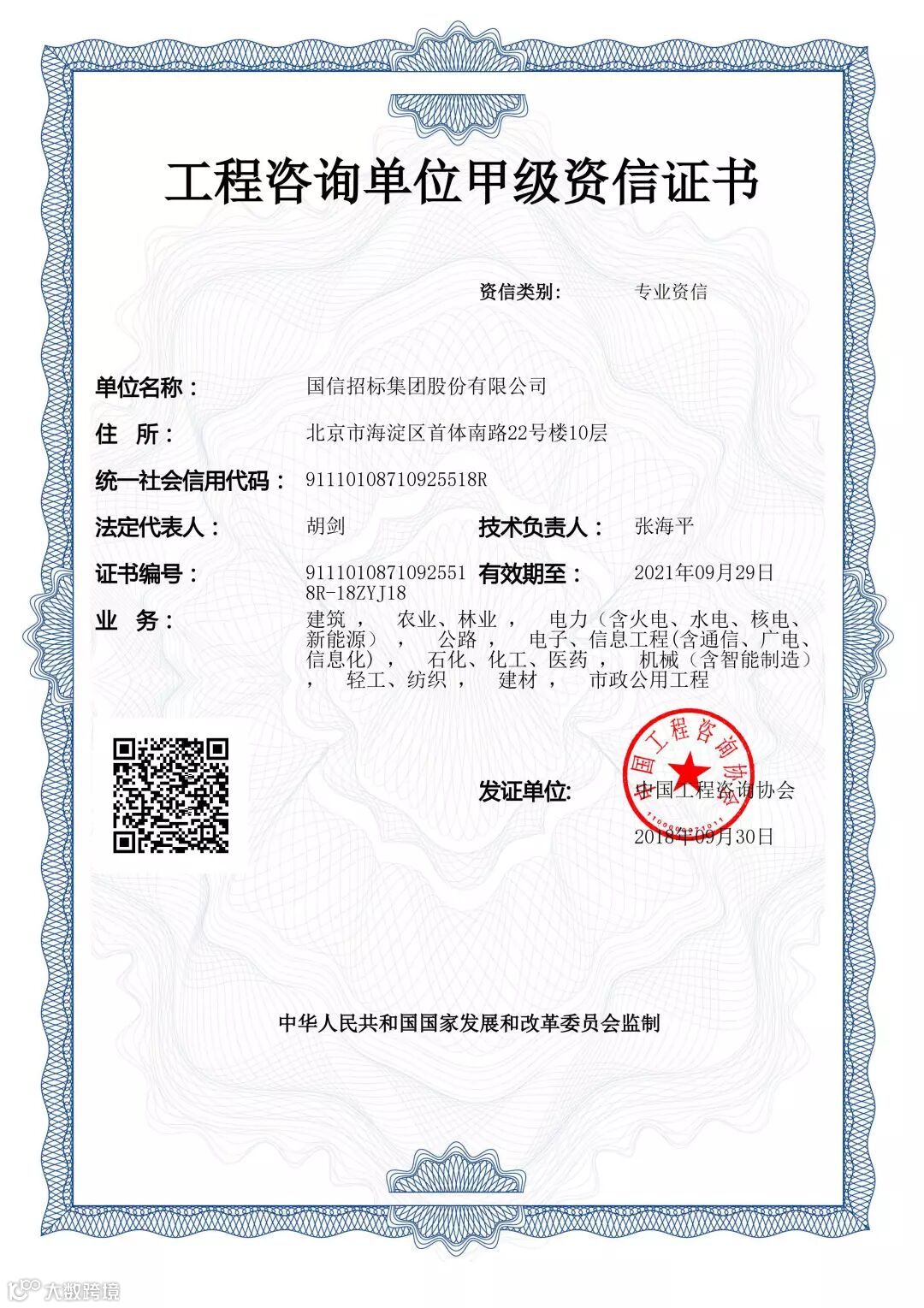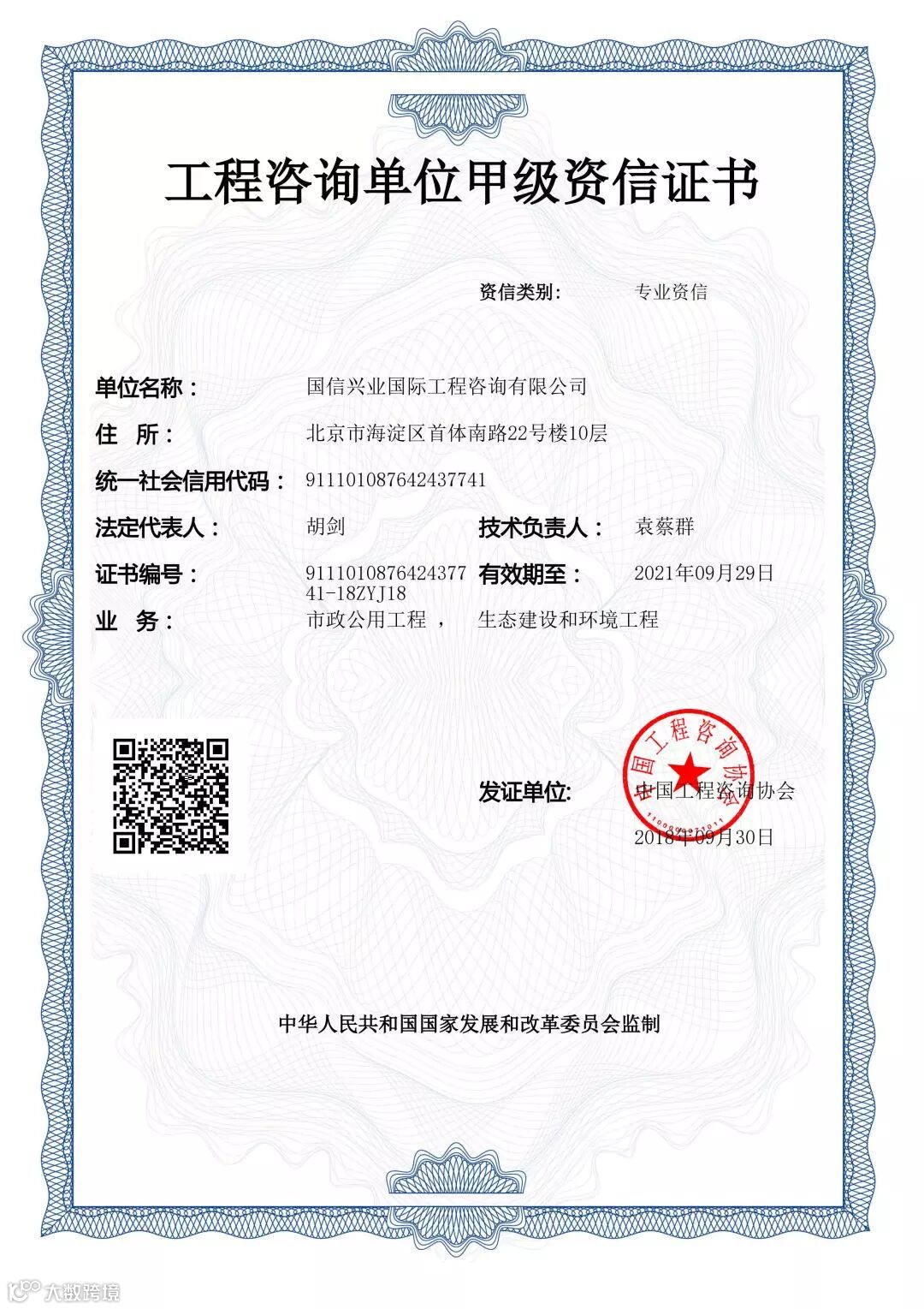 甲级专业资信证书