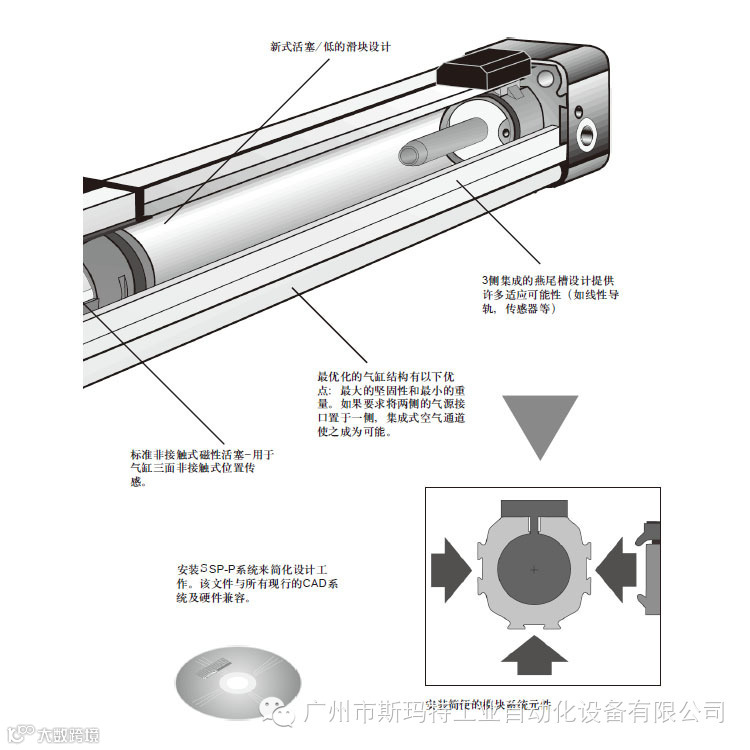 一种新的模块式直线驱动系统使用此第二代线性驱动器,SMARTECH为设计工程师提供了完全的机动性。著名的SMAR下EC日气缸已被改进成为一种组合线性气缸的)「发者,引导者和控制者。它是新式的多样化的SMAR下EC日SYSTEM PLUS直线驱动系统的基础。这个模块式系列部件设计了所有附加的功能,可以替代早先的气缸系统。3侧皆有安装导轨
