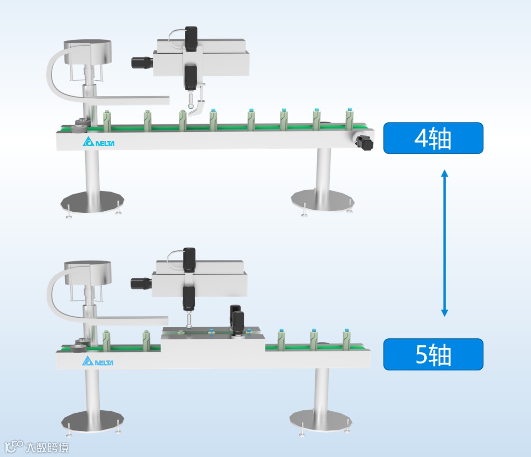 4轴/5轴机型可切换(机械结构可为两个夹瓶皮带轴固瓶,或输送带轴+夹瓶气缸固瓶)。