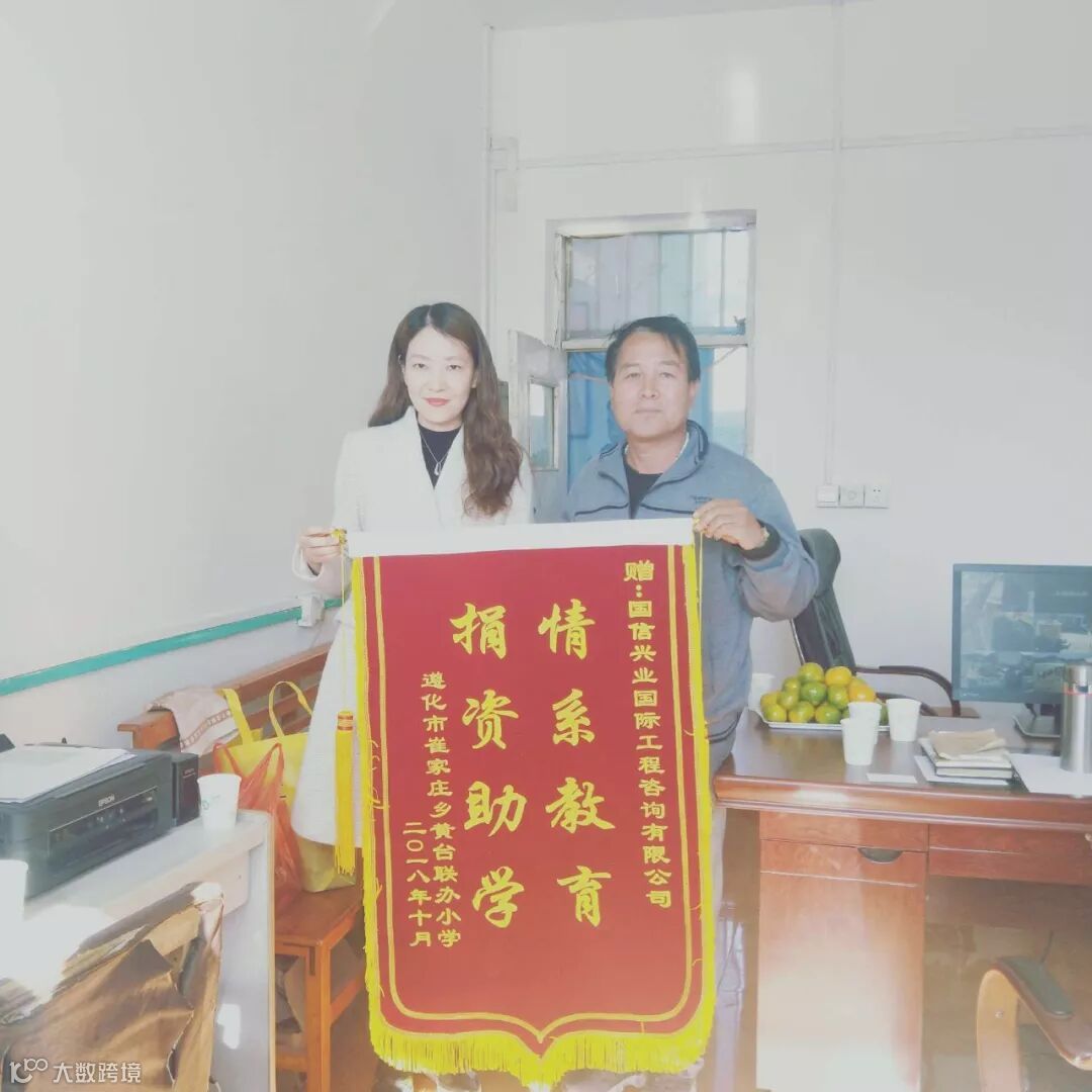 黄台联办小学方校长热情的接待了我们,并向我们介绍了学校的基本情况。为了表达感谢之情,方校长特为我司献上了锦旗。