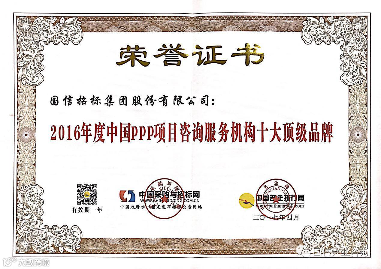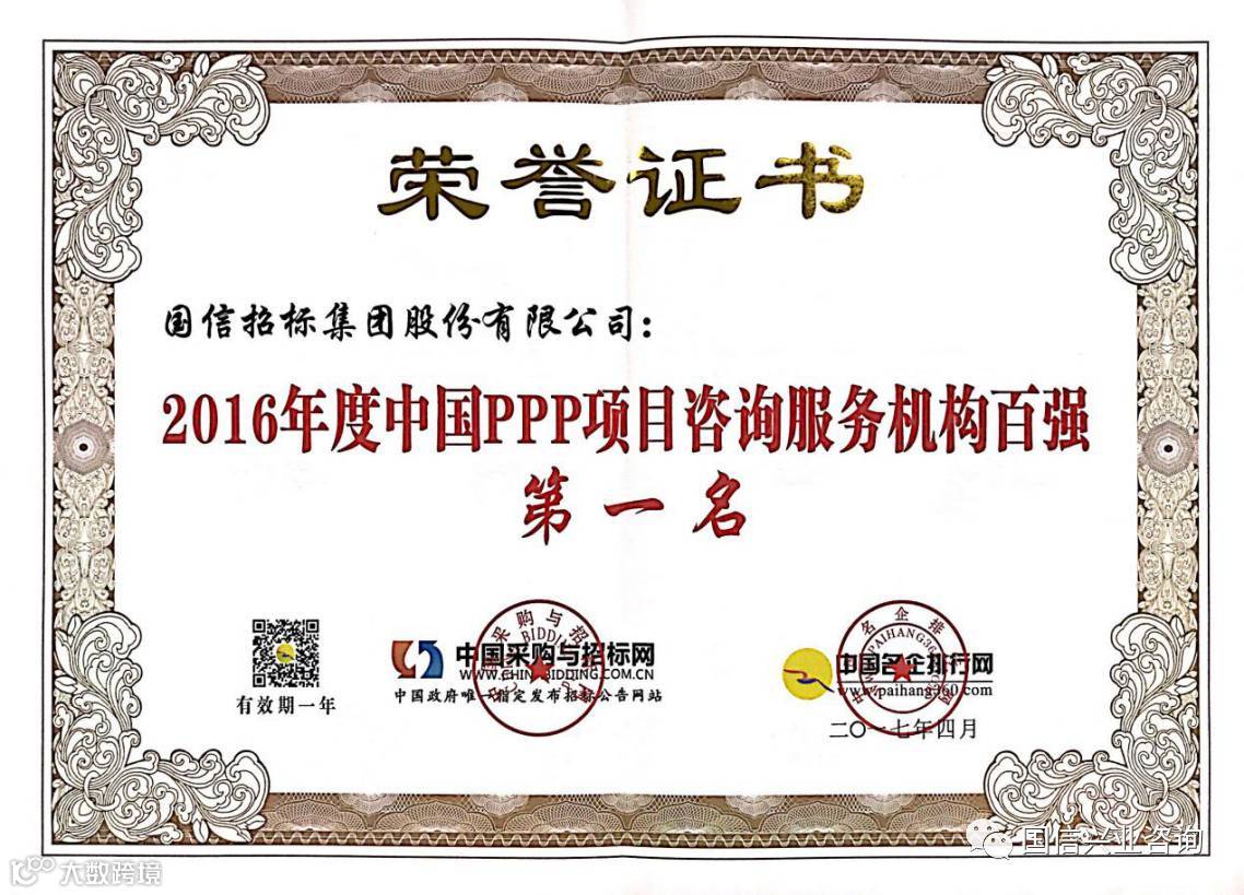 国信招标集团能够持续多年获得如此多的殊荣确为实至名归。作为招标代理行业的引领者,国信招标集团综合咨询实力雄厚、业务资质齐全、业务范围广泛、综合管控体系先进、经营业绩稳居业界首位。截至2016年年底,累计承接招标采购项目超过5万项次,委托金额超过2万亿元,项目范围涵盖各行各业。其中2016年,集团累计承接招标采购项目近13000项,中标金额超过2300亿元。近年来,集团年均营业收入在10亿元以上。同时,国信招标集团不断创新发展,经过多年来的不懈努力,在投融资咨询领域摸索出了一系列相对成熟、完善的运作模式,积累了丰富的投融资咨询经典案例和经验。近年来,在PPP咨询业务方面取得了长足的发展,单就2016年一年新签订PPP咨询合同超过300项。截至目前,集团已累计承接PPP咨询项目近600个,涉及项目投资规模累计近1万亿元。项目遍及全国近三十个省市、涉及十几个行业、涵盖了各种PPP实施模式。其中,集团承接并完成的天津市北水厂股权转让项目被国家发改委列为示范项目,在财政部发布的前三批示范项目中,国信招标集团作为咨询机构的有39个。同时,国信招标集团已入选近百个各级政府的PPP咨询机构库,有多位员工入选国家发改委和财政部PPP专家库。