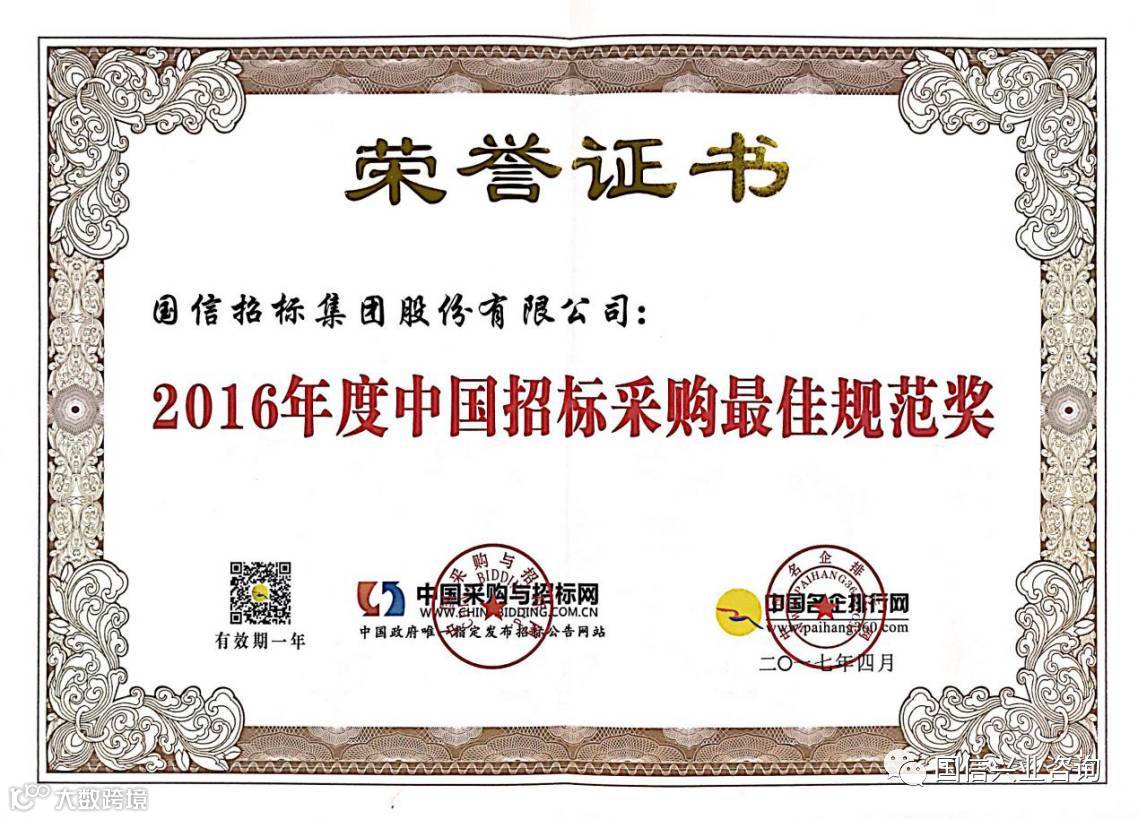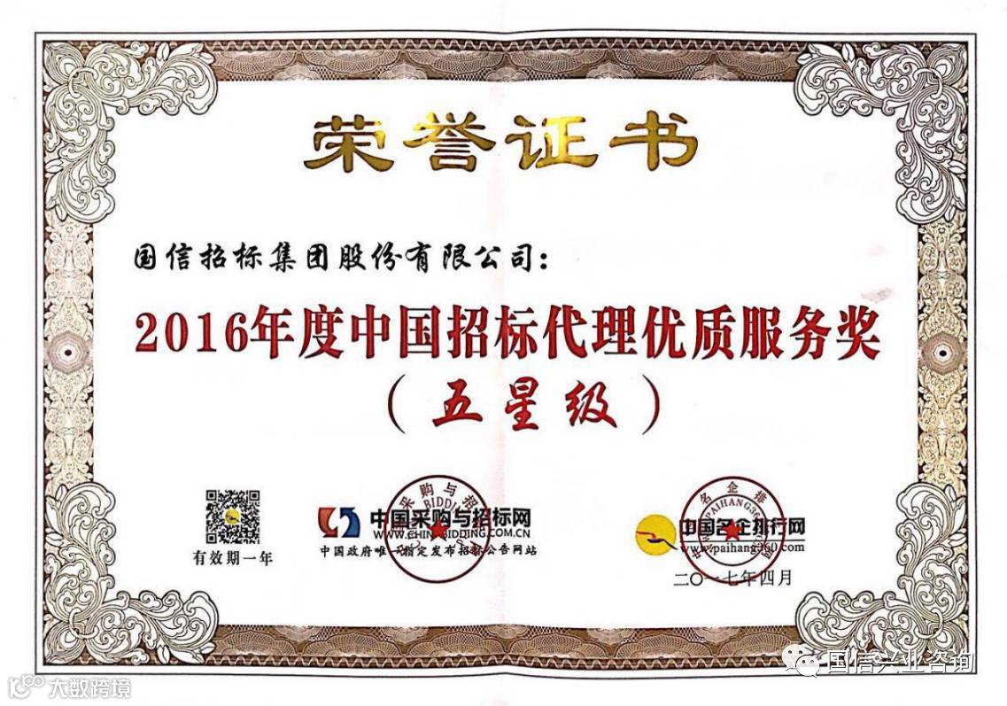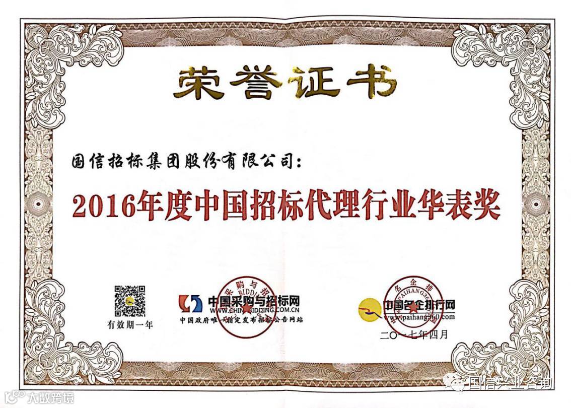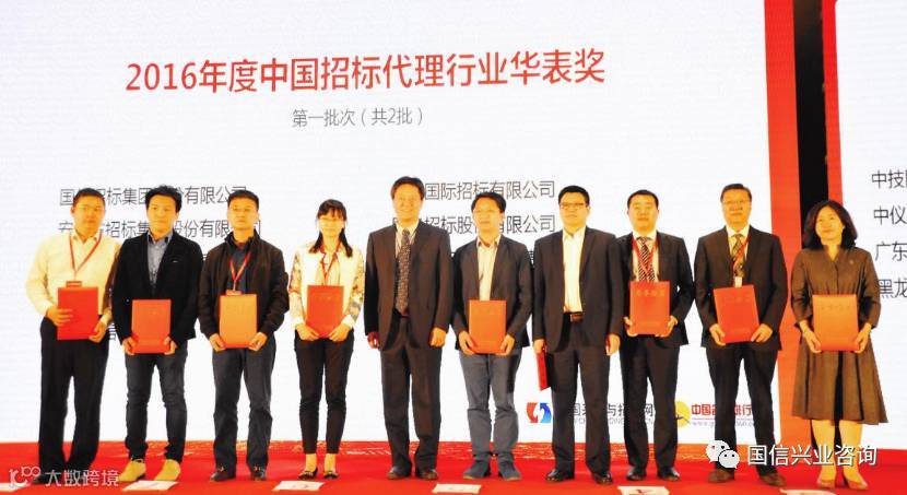 经主办方专家客观、公正的评选,国信招标集团股份有限公司在本次评选活动中继续以绝对的优势囊括十余项大奖,分别是:2016 年度中国最具竞争力招标代理机构百强第一名、2016 年度中国工程建设项目招标代理机构30强第一名、2016 年度轨道交通项目招标代理机构首选品牌第一名、2016 年度中国 PPP 项目咨询服务机构百强第一名;中国招标代理行业华表奖、2016 年度中国招标代理机构十大顶级品牌、《政府采购法》颁布15周年15佳政府采购典范招标代理机构、2016 年度中国招标代理优质服务奖(五星级)、2016年度中国阳光招标奖、2016 年度中国招标采购最佳规范奖、2016年度中国招标代理最佳业主满意奖;2016 年度中国 PPP 项目咨询服务机构十大顶级品牌、2016年度中国市政工程PPP项目咨询服务首选品牌、2016年度中国生态建设与环境保护PPP咨询服务首选品牌、2016年度中国交通运输PPP项目咨询服务首选品牌、2016年度中国城镇综合开发PPP项目咨询服务首选品牌、2016年度中国科技PPP项目咨询服务首选品牌、2016年度中国PPP项目咨询服务最佳专业精神奖、2016年度中国PPP项目咨询服务最佳智库奖等奖项。集团公司副总裁李继红代表公司参加了颁奖典礼并致获奖感言。
