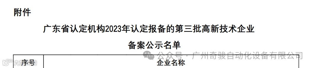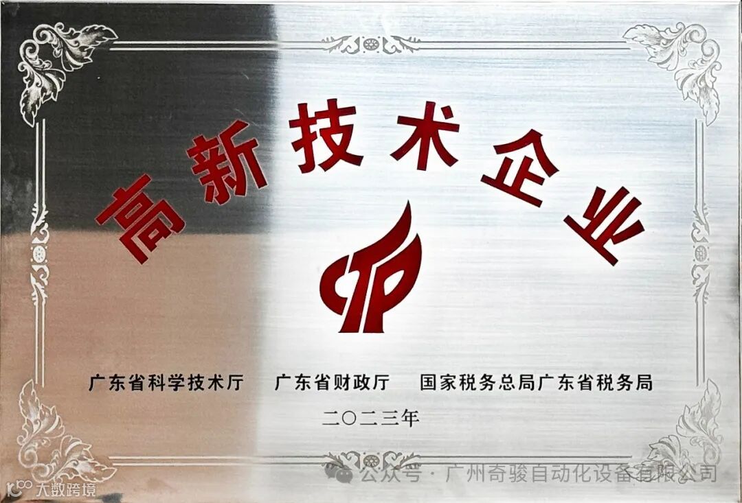 正值龙年新春来临之际,广东省政府联合《广东省科学技术厅》、《广东省财政厅》、《国家税务总局广东省税务局》亲自为广州奇骏自动化设备有限公司颁发 二0二三年《高新技术企业》证书。