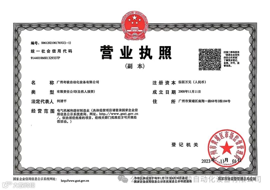 广州奇骏自动化设备有限公司,于2008年11月11日正式成立,在这漫长卓越,挑战与机遇共存的壹拾陆年里,公司一直专注于电气自动化领域的研发与拓展,在电气自动化控制领域上,如:PLC控制系统,伺服系统,变频器,传感器,视觉检测,减速电机等电气控制领域,都有自己的实战经验,成功案例与研发成果。