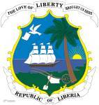 利比里亚国徽与国旗一样,有着较长的历史。基本图案是一枚被天蓝、海蓝、草绿三色分割的椭圆形纹徽。淡蓝的大西洋海面上,一艘鼓满风帆的海船满载获得自由的黑奴回到祖先的土地。半轮旭日浮出海面,天空垂落巨大的金幔,预示着这个新兴国家前途无量。从蔚蓝色深处飞来一只衔着和平文书的鸽子,把福音传向大地。绿色国土生长一棵高大的椰树,代表西撒哈拉热带雨林。树下的农具表明农业是利比里亚的基础。盾徽上、下各有一条饰带,分别写着“我们因热爱自由而来到这里”及“利比里亚共和国”字样。