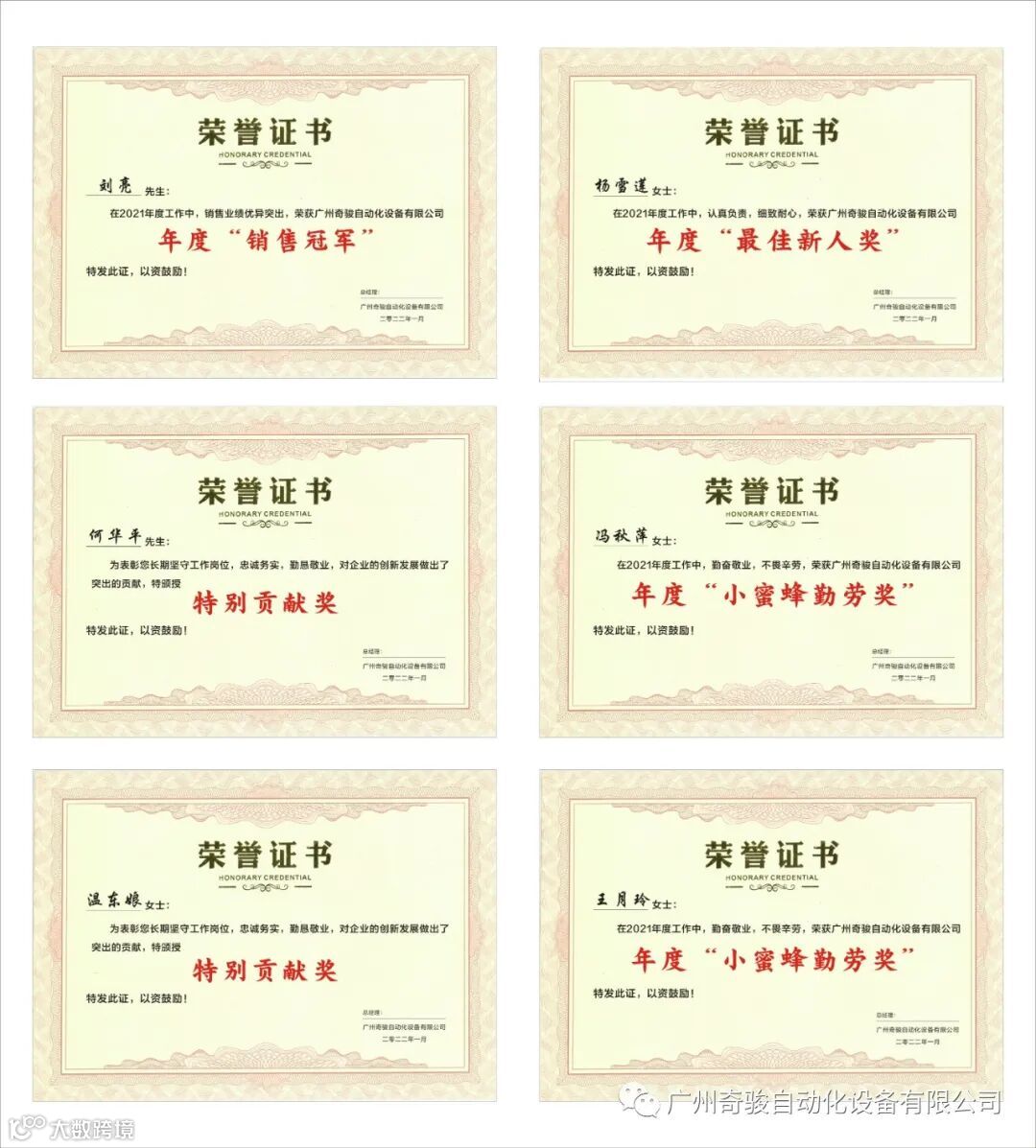 随后,公司总经理何清平先生及领导宣读了奇骏公司对于2021年度优秀个人的表彰决定,号召全体员工向他们学习,学习他们在各自岗位上尽职尽责、团结奋进的精神!同时为优秀员工颁发证书和奖金,鼓励他们在新的一年里起到模范带头作用,做出新的贡献。
