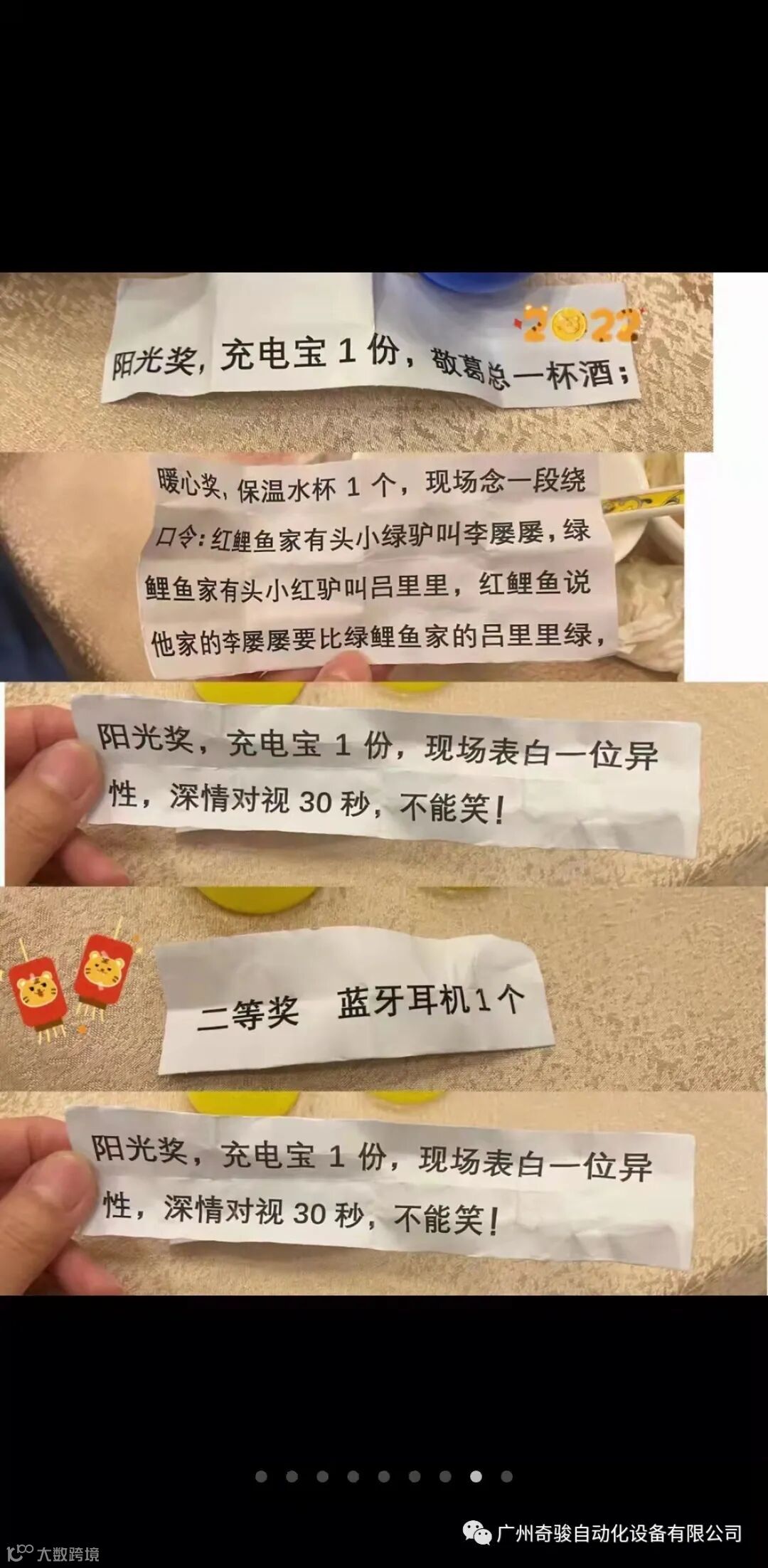 晚宴不仅给大家带来了欢声笑语,同时也让同事之间的心更加贴近。笑声、掌声、欢呼声一直在会场上荡漾,呈现出奇骏公司这个大家庭的欢乐和谐。2022年是一个新的起点,随着公司全面布局的完善,今年将进入一个更高速发展的时期,奇骏公司会一如既往地为全国用户提供超一流的优质服务。“激情跨越,共赢未来”我们信心满怀,愿与所有客户携手共赴美好明天!