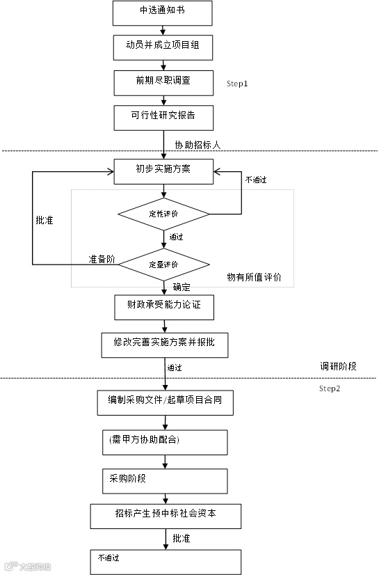 该阶段主要工作内容包括:签订PPP咨询合同、成立项目组,开展前期尽职调查,进行可行性研究。