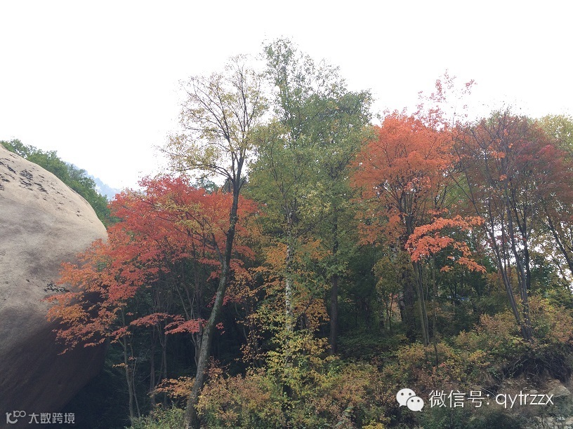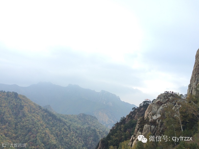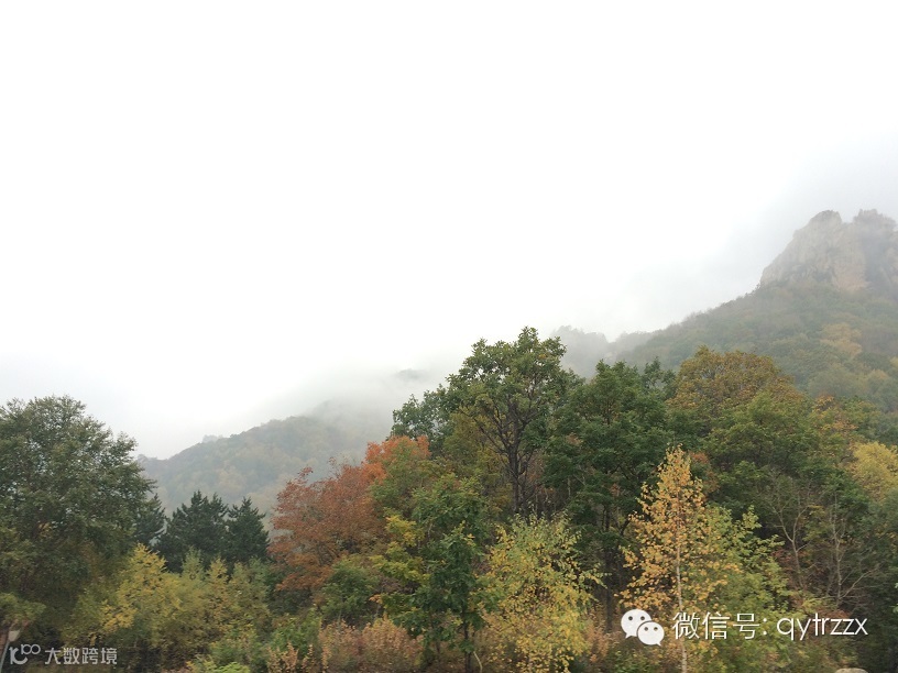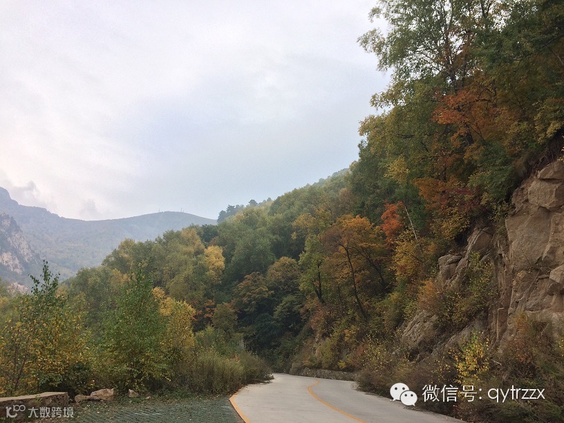 非常可惜的是,由于天色渐晚,担心安全的原因,我们在离主峰6km的莲花池平台就奔兴隆县境内的正门而去了,没有来得及欣赏主峰的美景,十分遗憾,然而缺憾也是一种期待,也许在晚秋的某一天还会再回来看她更浓郁的秋色,也许是隆冬,再来体会“严障寒深。阴崖积雪,凝冰夏结”的另一番风情。