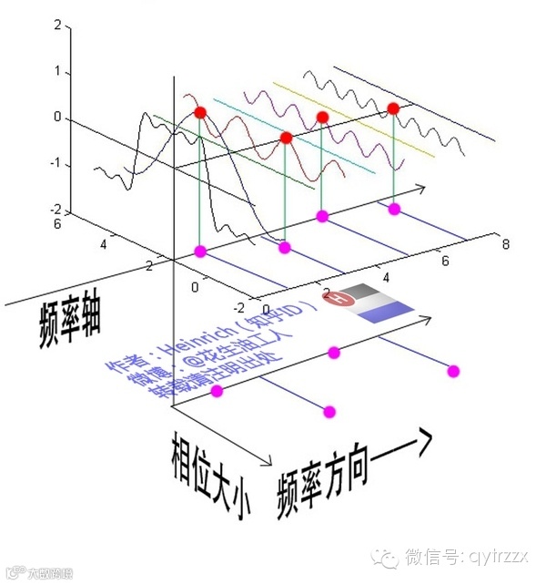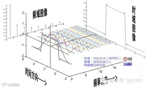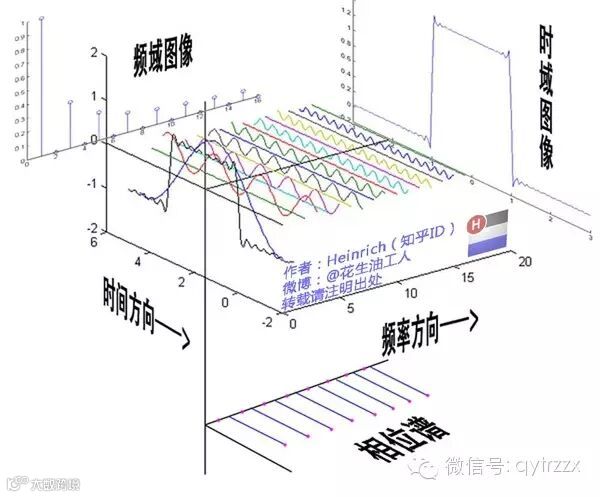 老实说,在我学傅里叶变换时,维基的这个图还没有出现,那时我就想到了这种表达方法,而且,后面还会加入维基没有表示出来的另一个谱——相位谱。