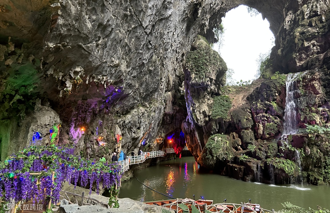 恰逢绵绵细雨,但并不影响我们对神秘大自然探索的热情,游船穿梭于乳洞之中,两岸钟乳林立,石笋如画,晶莹斑斓,水面四周是嶙峋的峭壁,巨大的天坑直穿云霄,而柔和的光线和淅沥的雨水穿过天坑......形成别有洞天的美景,令家人们心旷神怡,陶醉于此,感受大自然赋予的神奇与魅力!
