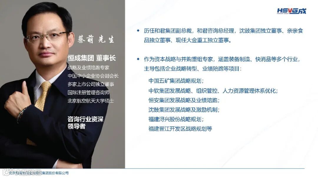 其子公司恒成陪跑聚焦国家级“专精特新小巨人”及以上企业,通过管理咨询、资本、陪跑为企业提供综合陪跑服务和系统解决方案,与企业家团队共同创新,一起完成思考和价值倍增的顶层设计,携手同行,将一张蓝图绘到底,业务欢迎联系恒成陪跑陆静:lu0816jing