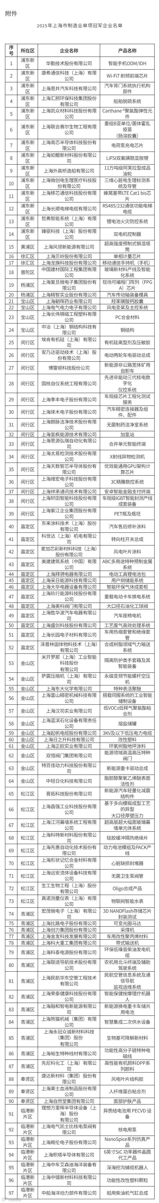 2025年12月,上海市经济和信息化委员会正式公布2025年上海市制造业单项冠军企业名单,97 家企业历经专家评审与综合评估成功入选,这是上海落实制造强国战略、推进新型工业化的重要实践,也是打响 “上海制造” 品牌的关键举措。