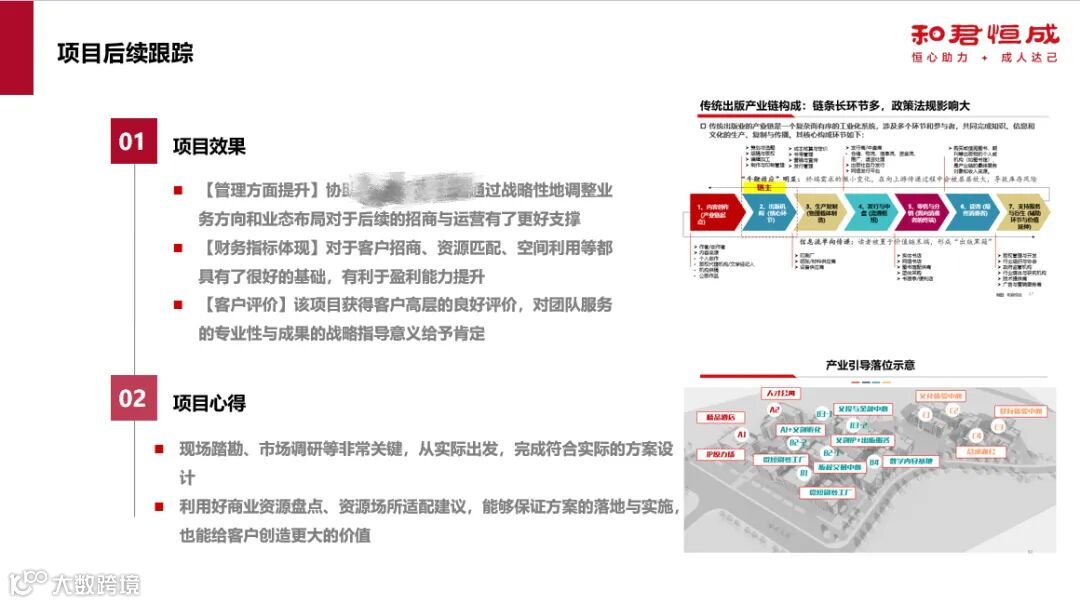 战略指引显成效,获客户高度认可:在项目推进过程中,咨询团队与业主方多次开展现场沟通研讨,高效推进方案优化与落地,在约定时间内完成全部成果方案交付,成功解决了客户产业园改造运营前的定位与规划难题,为产业园下一阶段招商运营提供了清晰、可落地的战略指引。