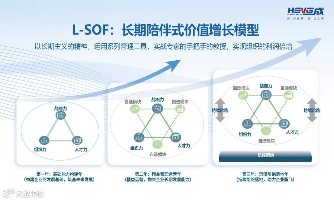 三年筑牢从生存到卓越的路径:「企业价值成长三年计划」依托 L-SOF 长期陪伴式价值增长模型,分阶段、有重点地推动企业能力升级。第一年为 “基础能力构建年”,聚焦 “活下来” 的核心需求,通过战略清晰化、组织高效化、人才优质化三大基础模块,帮企业明确方向、理顺秩序、储备人才,稳稳立足市场;第二年为 “精益管理运营年”,叠加精益模块赋能,在财务、营销、生产等领域推行精细化运营,优化资源配置、提升效率、降低损耗,打通盈利增长链路;第三年为 “沉浸陪跑落地年”,结合资源资本赋能,助力企业突破瓶颈、拓展海外市场、深化产业布局,完成从 “赚钱” 到 “长久发展” 的质的飞跃。