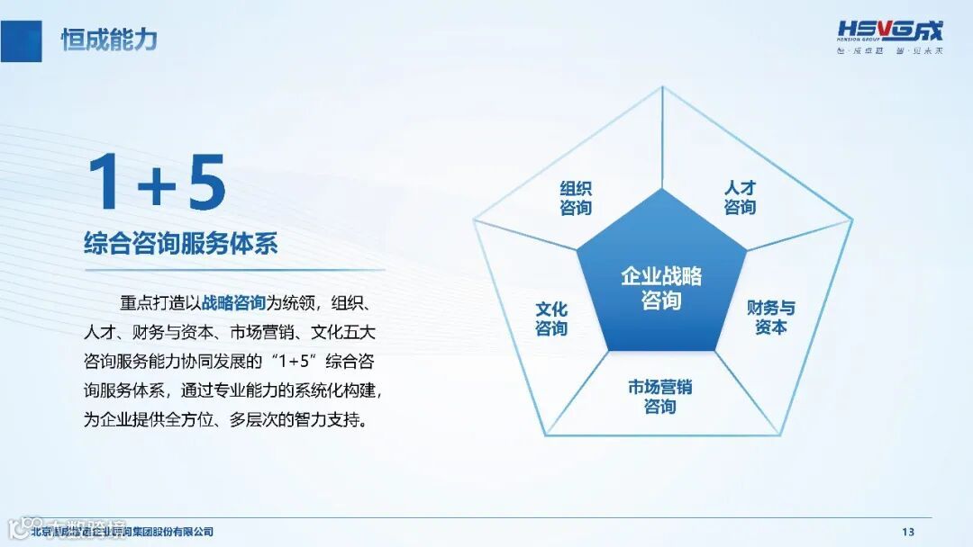 恒成集团构建“咨询+产业+人才”三位一体的业务布局,和持“人才为本,价值为魂,客户为根,成功为要”的核心价值观,恒成智远以持续创新为发展动力,以专业智库为战略支撑,致力于为实体经济企业提供高价值管理智慧解决方案,推动产业转型升级和高质量发展,助力中国企业提升全球竞争力。