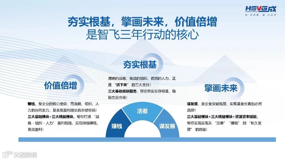 在充满不确定性的商业浪潮中,每一位企业家都面临着 “活着、赚钱、谋发展” 的三大核心命题。恒成集团深耕管理咨询 23 年,基于服务 3000 余家大中型企业的实战经验,重磅推出「企业价值成长三年计划」,以 “夯实根基、价值倍增、擎画未来” 为核心,通过 “战略 - 组织 - 人力” 全链路协同,助力长期主义企业实现跨越式成长。