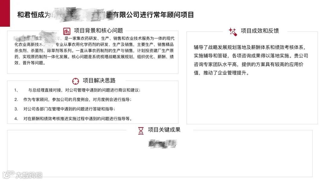 经过5个月的专项实施辅导,项目取得显著成效:战略发展规划顺利落地,薪酬体系与绩效考核体系全面推行,组织优化与晋升机制逐步完善,各项咨询成果均成功转化为企业管理效能。客户对项目成果给予高度认可,评价“恒成智远专家团队水平高,提供的方案具有极高的应用价值,切实推动了企业管理升级”,充分肯定了方案的实操性与咨询服务的专业价值。