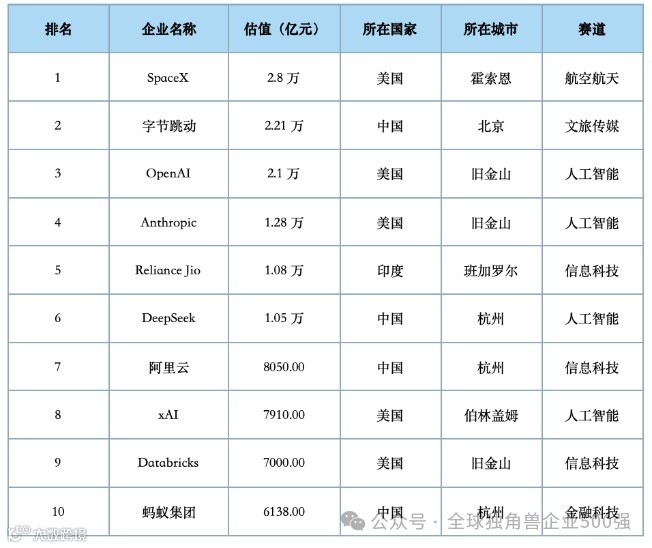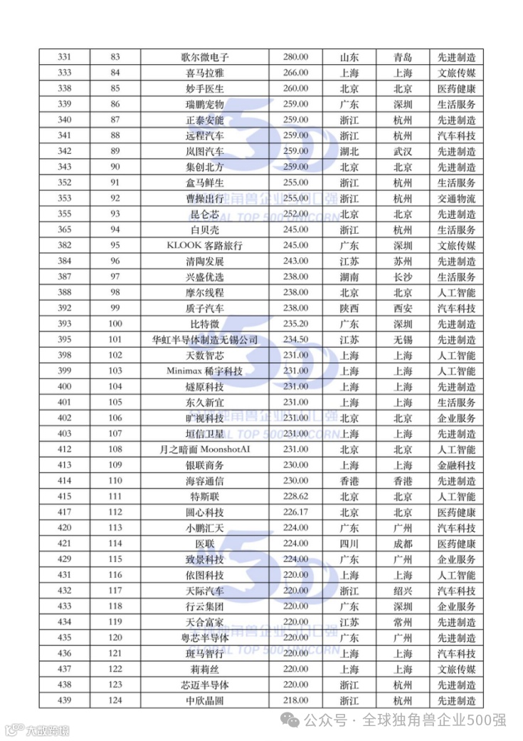 据悉,《2025全球独角兽企业500强发展报告》是第七份关于全球独角兽企业500强发展的年度报告。该报告基于全球独角兽企业数据库,按照独角兽企业评估标准,采用人机共融智能技术(Human Machine Intelligence),从全球范围内遴选出估值排名前500家的独角兽企业,形成“2025全球独角兽企业500强排行榜”。
