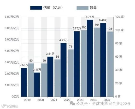 图1 2019—2025年全球独角兽企业500强总估值变化