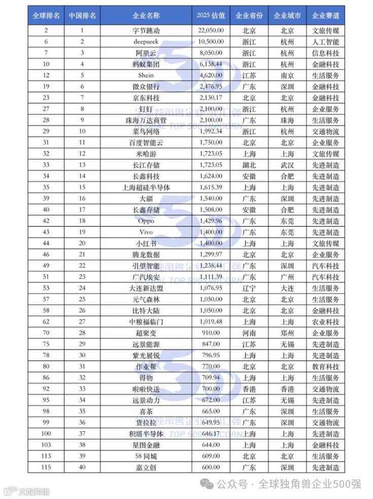 2025年12月3日,央视网财经消息,2025全球独角兽500强榜单正式发布,中国共有150家企业入选,在多个赛道上展现出领跑全球的竞争力。独角兽企业作为创新驱动的代表,其发展态势备受瞩目,此次中国企业的亮眼表现,彰显了中国在新兴产业领域的强劲创新活力与发展潜力。