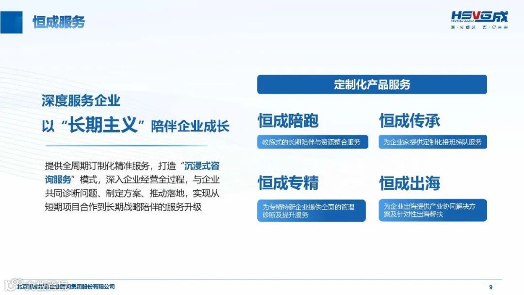 恒成陪跑:教练式长期陪伴与资源整合,深度参与企业经营全流程。
