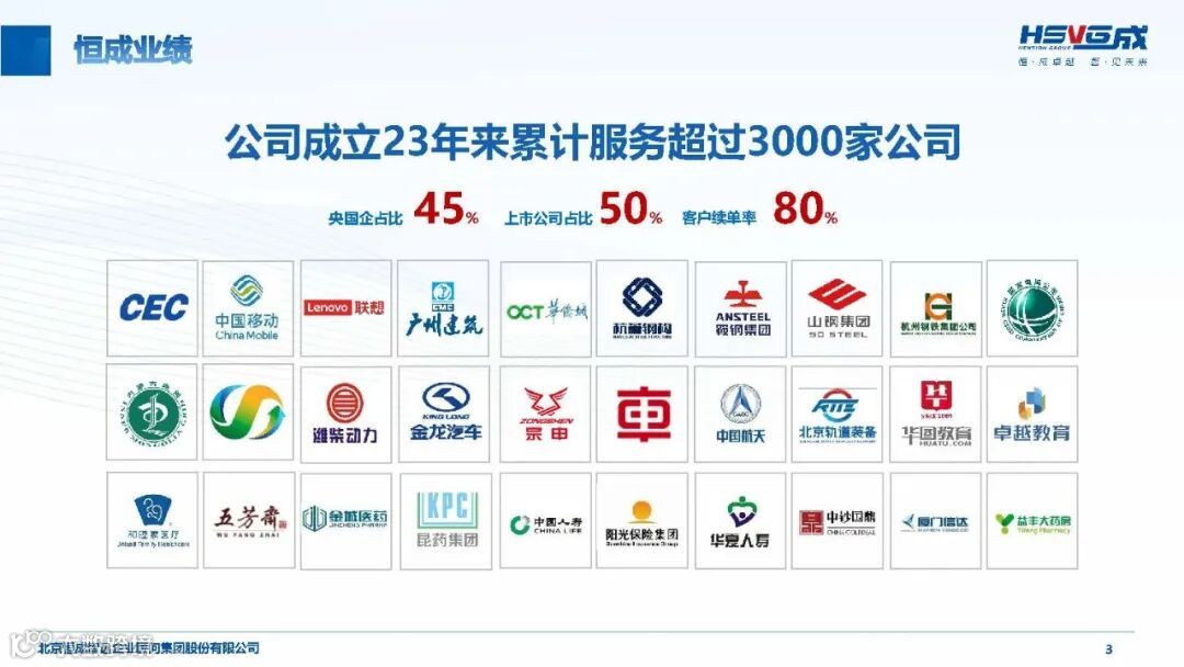 优质客户基础:累计服务 3000 + 大中型企业,涵盖中核、中化、中车等央国企(占比 45%)、上市公司(占比 50%),客户续单率高达 80%,合作周期多为 3 年以上,部分达 10 年 +。