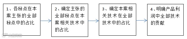 在实践中,也可将第1步骤和第2步骤整合,直接确定本案主张并成立的秘点占本案相关技术的占比。也可以采用其他方法来计算技术贡献率,例如,将采用权利人本案相关技术制备的产品与同类产品的营业利润或销售利润进行比较,将差额作为权利人本案相关技术对产品利润的贡献,即直接得出上述第3步骤和第4步骤的贡献率。权利人本案相关技术可能包括专利技术、技术秘密等,因此,需要再精确计算主张并成立的秘点占本案相关技术的占比。
