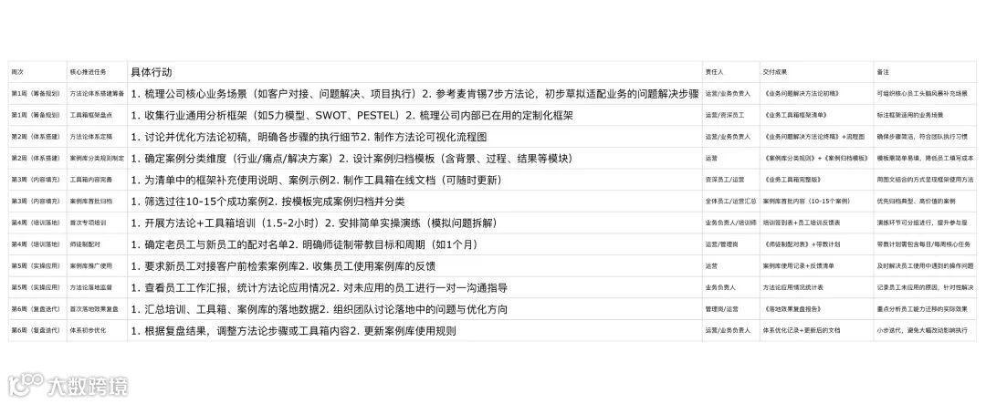 1. 开展方法论、工具箱、案例库的专项培训,搭配实操演练(如模拟客户问题,让员工用方法论拆解、用工具分析、用案例参考)。