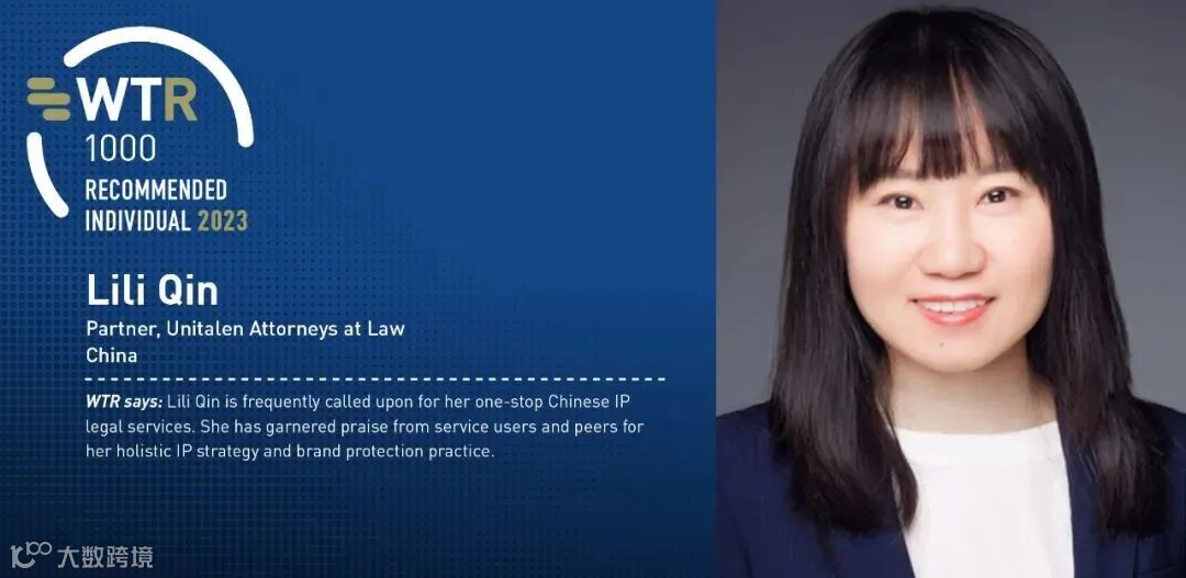 WTR 评价:“WTR1000的新秀秦丽丽律师曾为VISA、超微和星展银行等提供一站式中国知识产权法律服务,并以全面的知识产权战略和品牌保护实践赢得了客户和同行的赞誉。