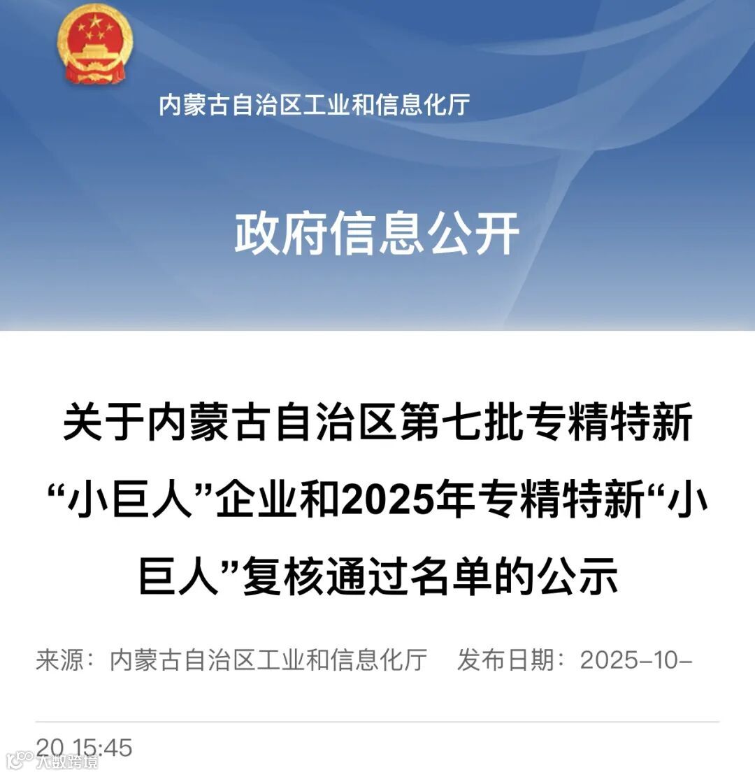 2025年10月,内蒙古自治区工业和信息化厅正式公示第七批专精特新“小巨人”企业及2025年复核通过名单,标志着自治区在优质中小企业培育领域再获突破。结合后续公示结果,此次共有7家企业新跻身“国家队”,包括包头长安永磁电机、巴彦淖尔市飞尚铜业等细分领域龙头,截至目前全区国家级专精特新“小巨人”企业总量已达45家,形成“创新型中小企业—专精特新中小企业—专精特新‘小巨人’企业”的完整梯度培育格局,为区域产业升级注入核心动能。