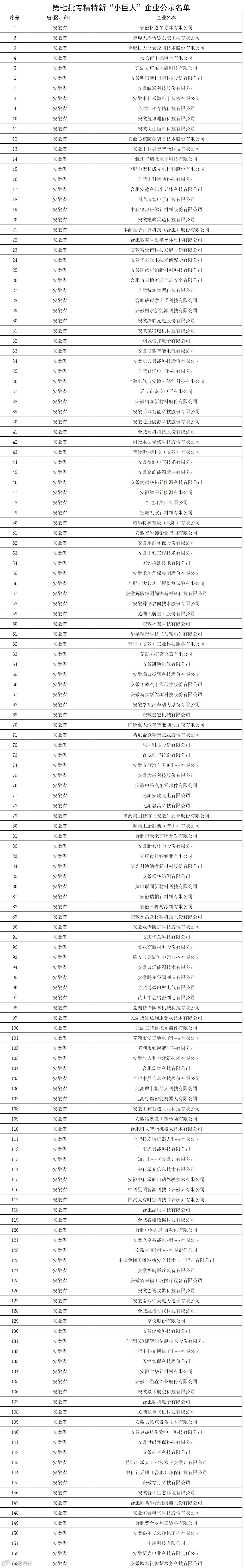 安徽第七批专精特新“小巨人”企业公示名单