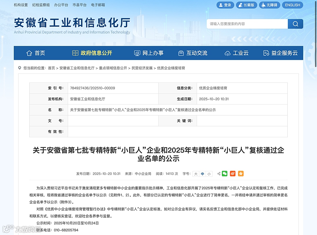 2025 年 10 月,安徽省工信厅发布第七批专精特新 “小巨人” 企业公示名单,全省新认定企业达 153 家,较第六批的 113 家同比增长 35.4%,增速显著高于全国 15.6% 的平均水平,占全国第七批新认定总量的 4.39%,稳居全国第七位。从全国范围看,安徽虽与江苏(807 家)、广东(691 家)等制造业强省仍有差距,但 35.4% 的高增速彰显出省内优质中小企业培育的强劲动能 —— 这一成绩不仅延续了 2024 年安徽新增 “小巨人” 数量居中部首位的优势,更标志着全省 “专精特新” 梯度培育体系进入提质增效的关键阶段。本次新认定企业覆盖半导体、新能源、高端装备制造等多个战略新兴领域,其中合肥沛顿存储科技、本源量子计算等企业,已成为细分赛道上掌握核心技术的 “排头兵”,为安徽制造业高质量发展注入新质生产力。