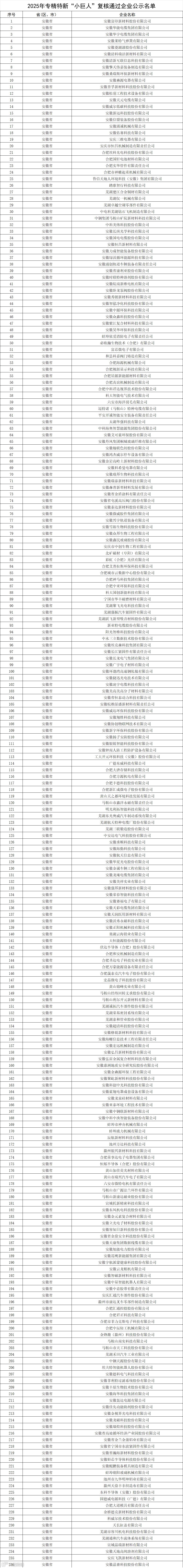 安徽2025年专精特新“小巨人”复核通过名单