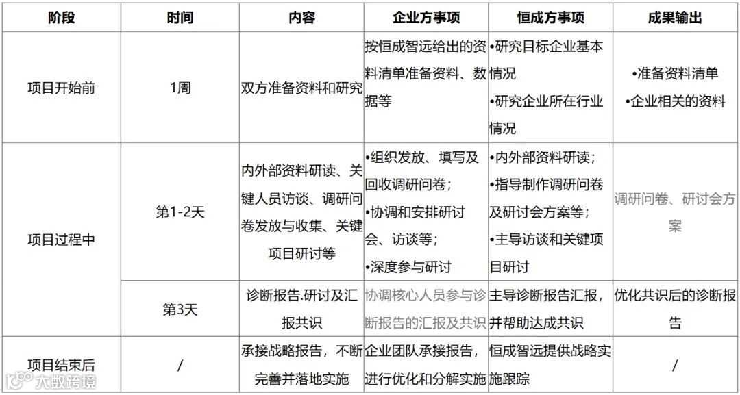 ☛2天关键人员访谈、调研问卷发放与收集、关键项目研讨等;