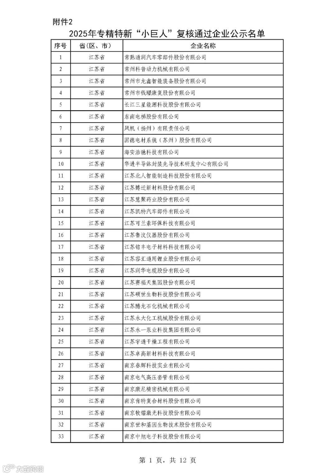 未来,随着政策支持力度的持续加大,这些 “小巨人” 企业将进一步发挥创新引领作用,推动江苏省制造业向更高附加值、更绿色低碳、更智能高效的方向迈进,为我国建设制造强国贡献更多江苏力量。