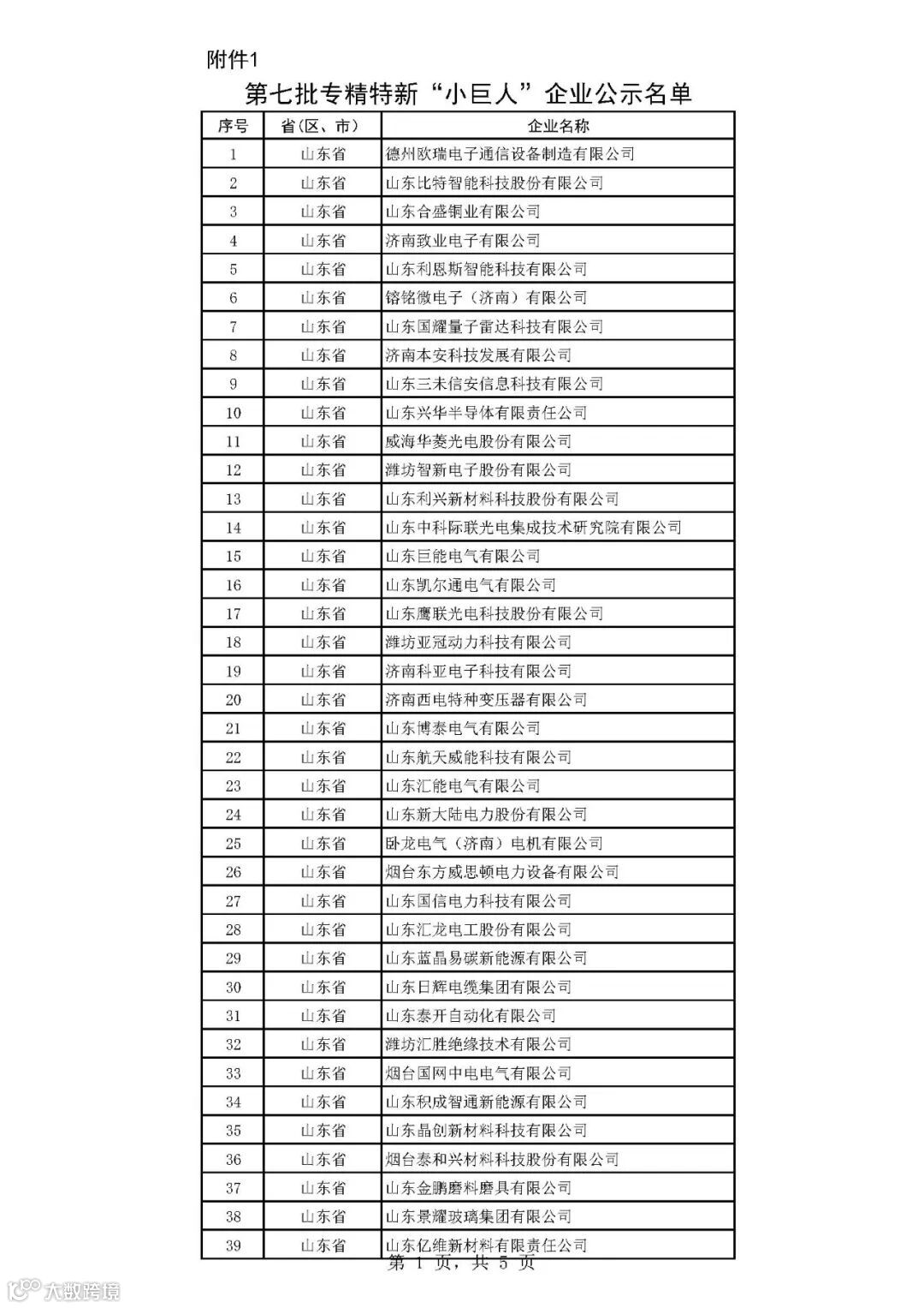 第七批专精特新“小巨人”企业公示名单