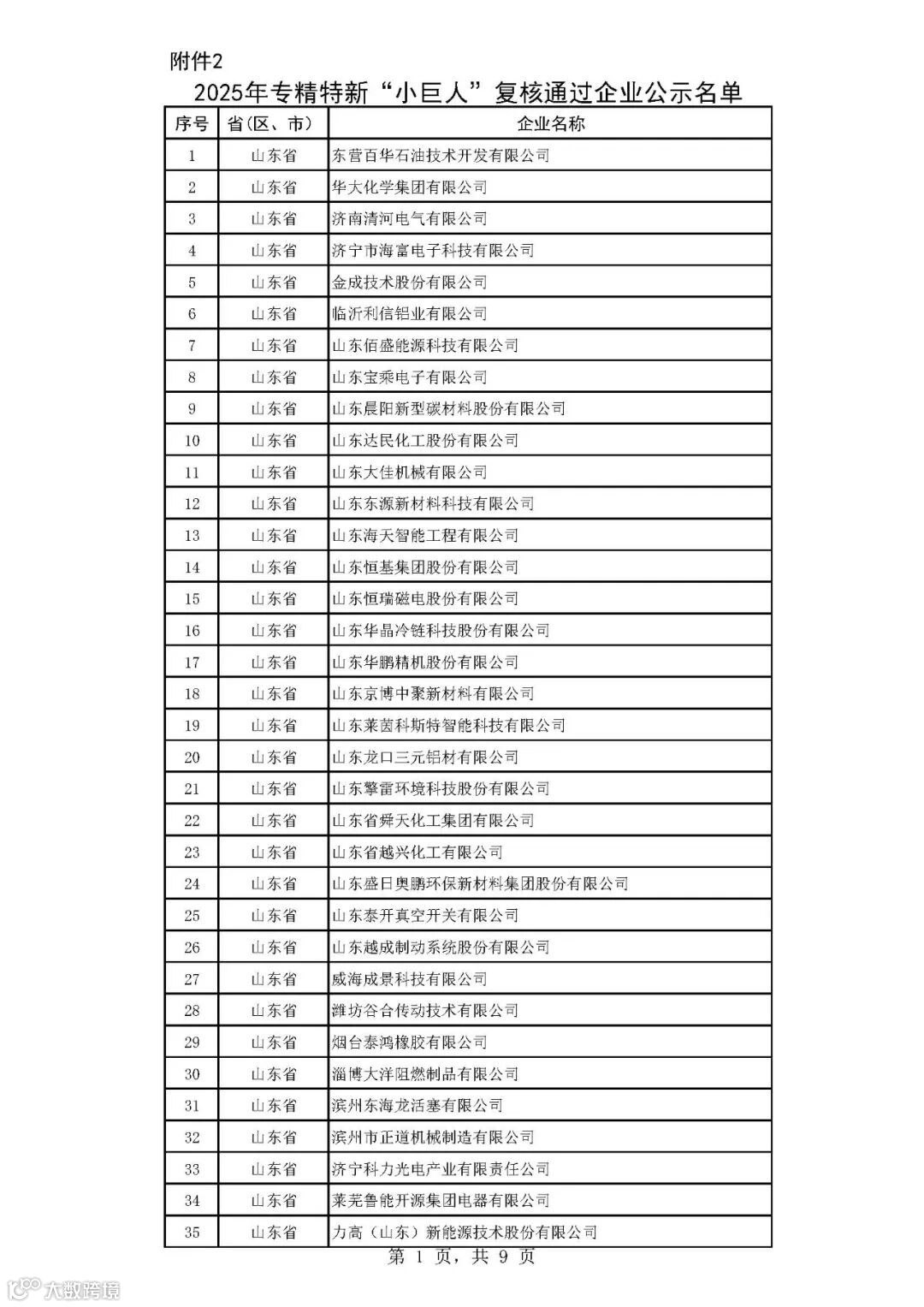 2025年专精特新“小巨人”复核通过企业公示名单