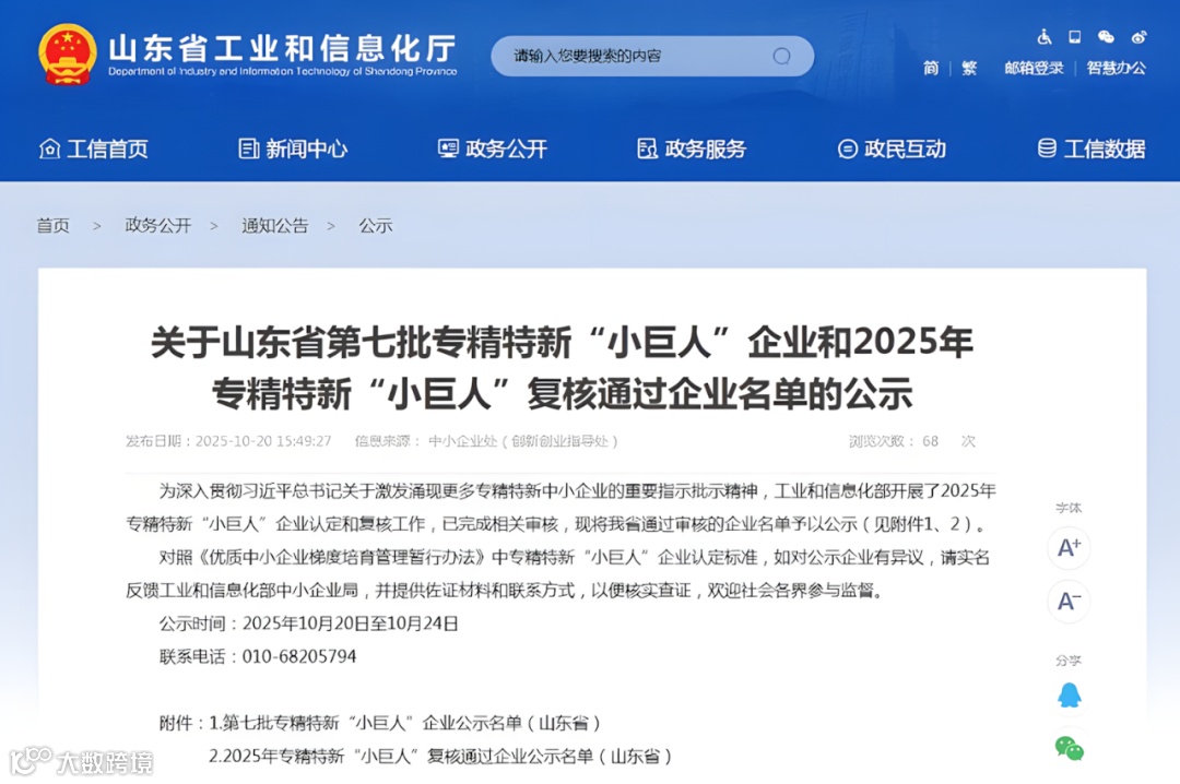 2025年10月,工业和信息化部公示第七批国家级专精特新 “小巨人” 企业名单,山东省 203 家企业成功新认定,同时一批存量企业顺利通过复核。此次扩容使山东国家级 “小巨人” 企业总数稳步向 750 家目标迈进,继续稳居全国第一梯队。这批新老 “尖兵” 深度契合山东 “十强” 产业布局,在高端装备、新材料、新一代信息技术等关键领域形成技术突破,不仅夯实了 “创新型中小企业 — 省级专精特新企业 — 国家级‘小巨人’” 的梯度培育体系,更以产业链关键环节的 “硬核” 实力,为山东制造业现代化建设注入强劲动能。