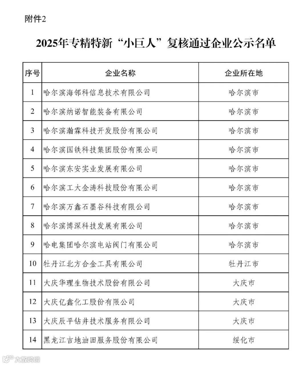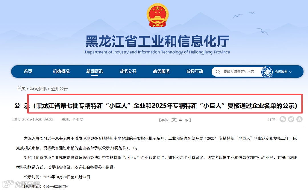 黑龙江2025年专精特新“小巨人”复核名单