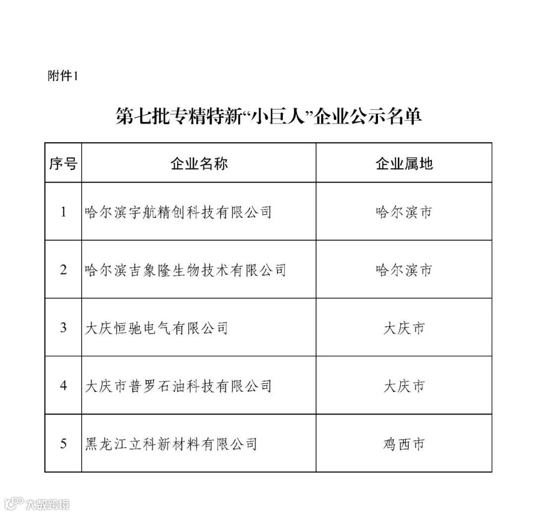 黑龙江第七批专精特新“小巨人”企业公示名单