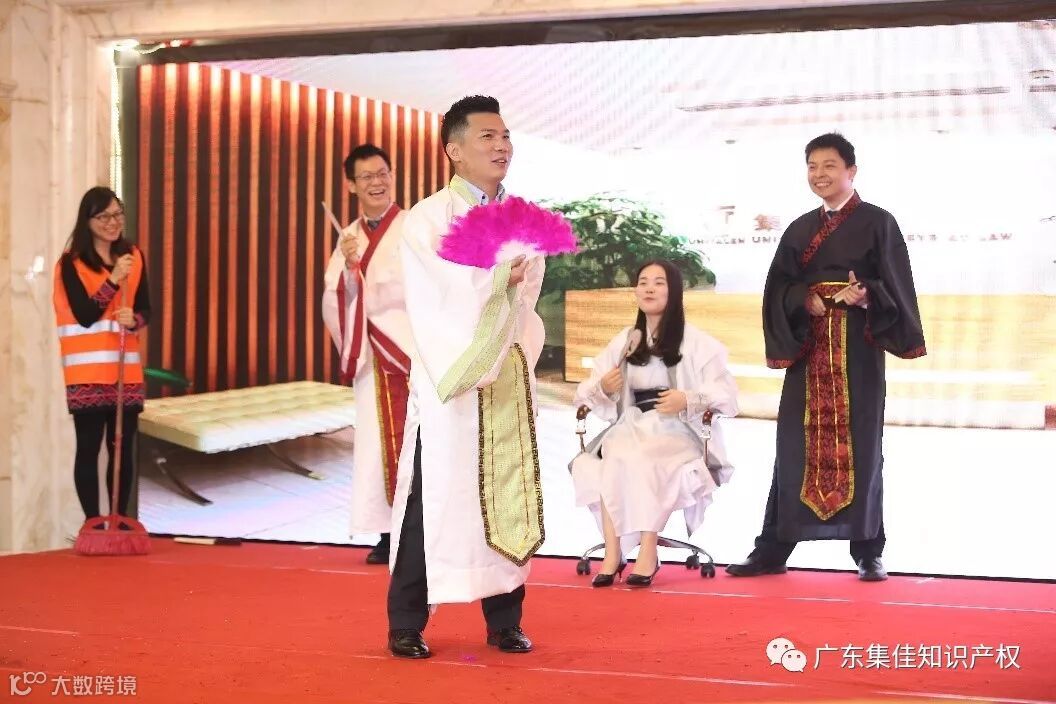 几位帅气的律师首先带来的集之佳律所《四大名捕办案记》节目,拉开了集佳盛大晚会的序幕。