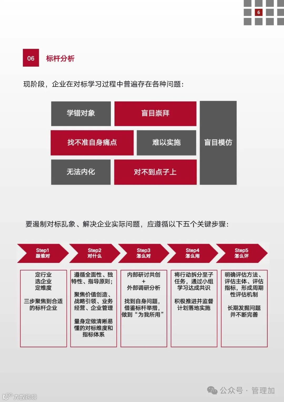 很多企业对标流于形式:学错对象、盲目模仿、无法内化。我们的解法是 “五步对标法”: