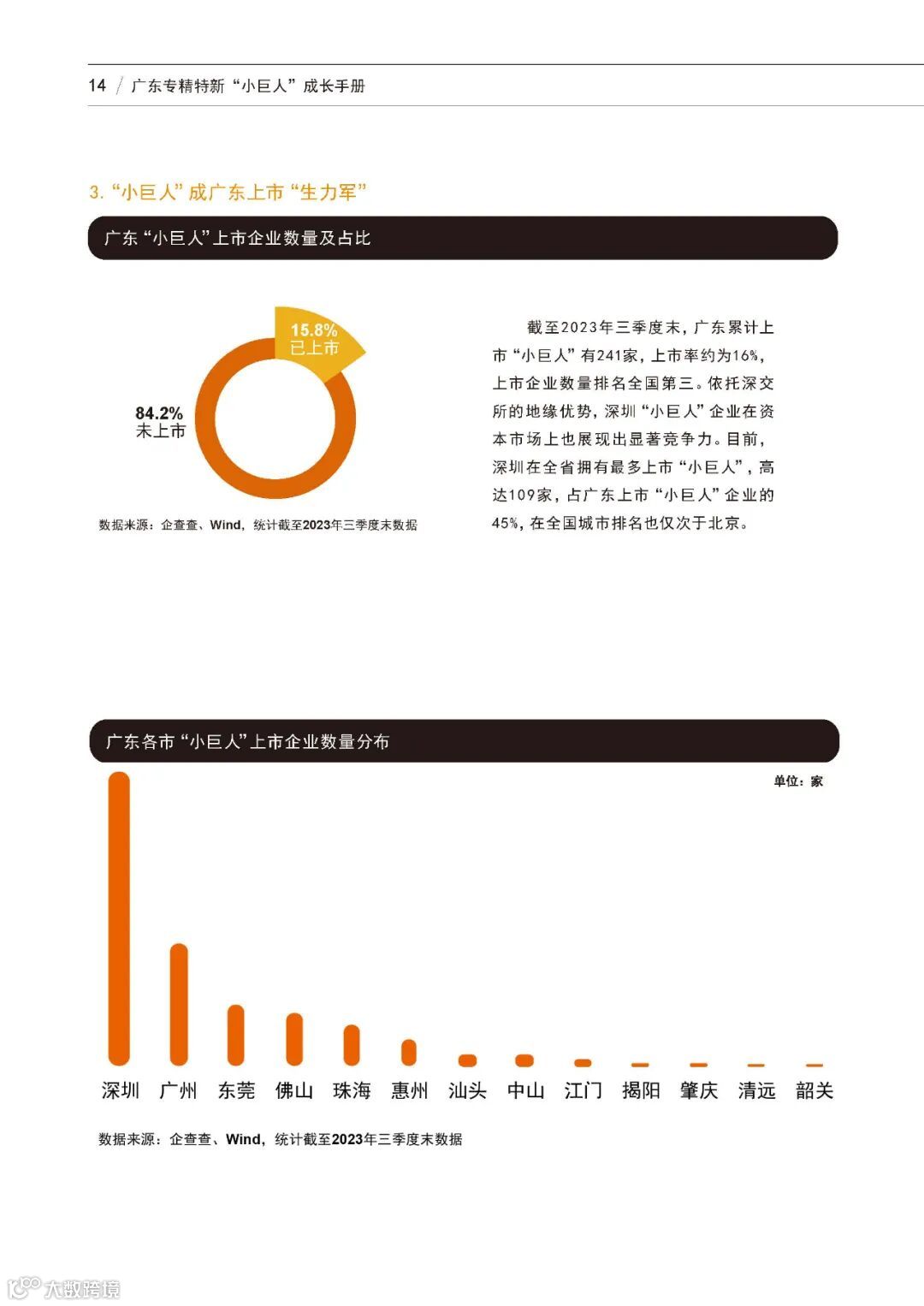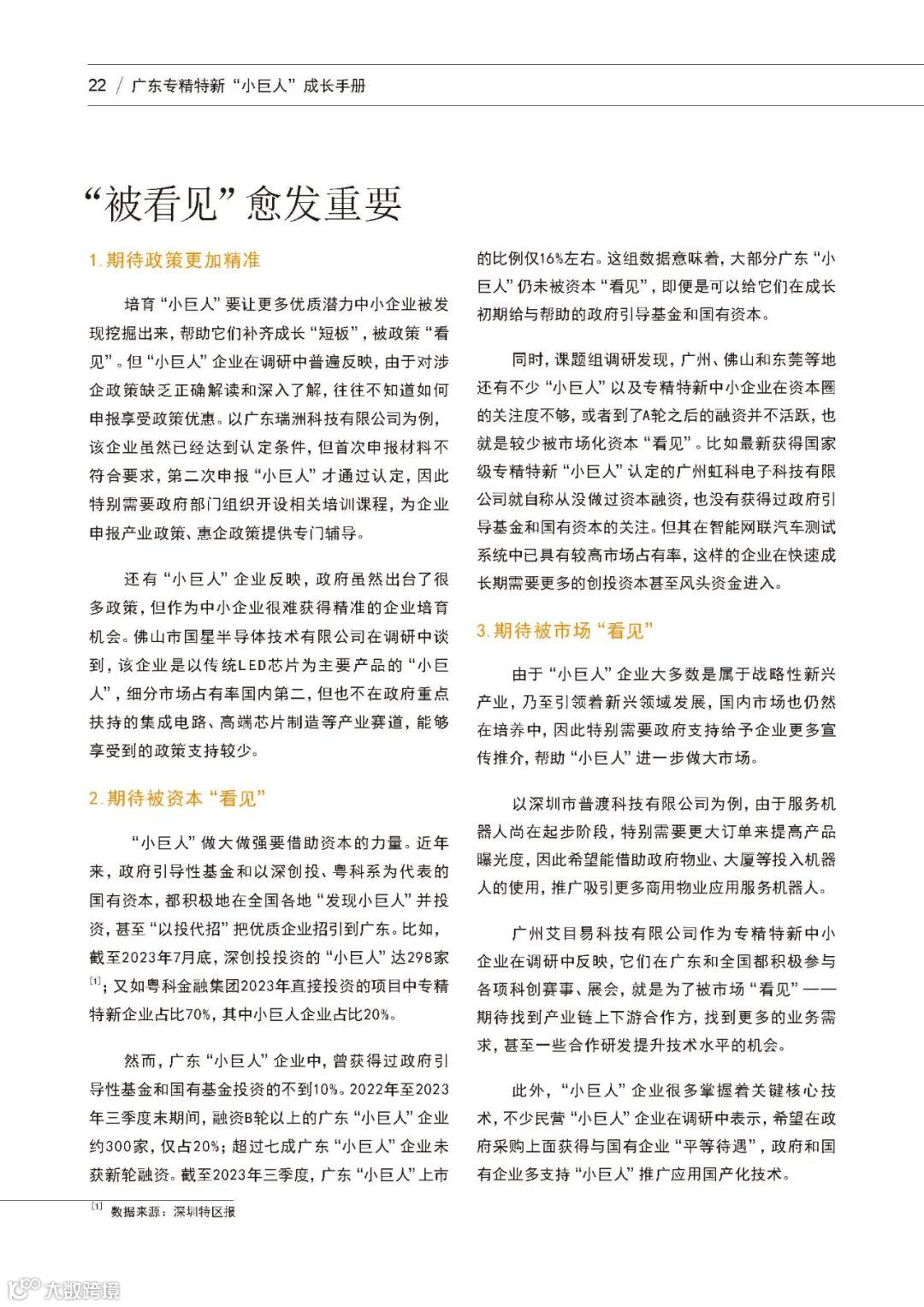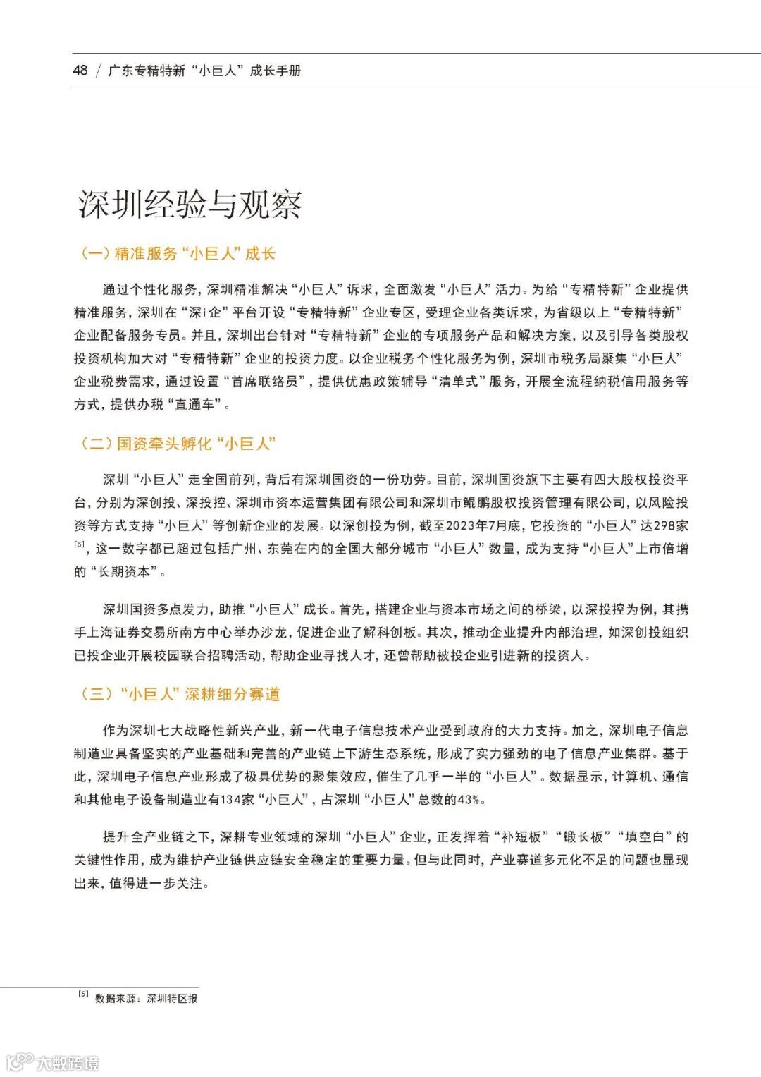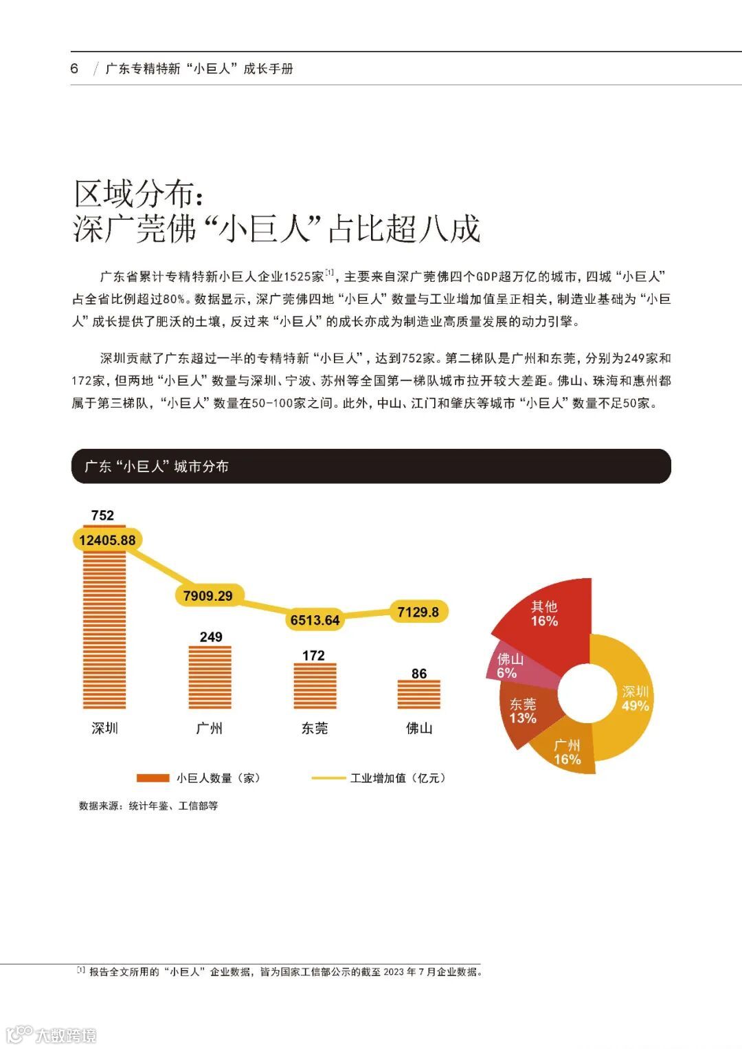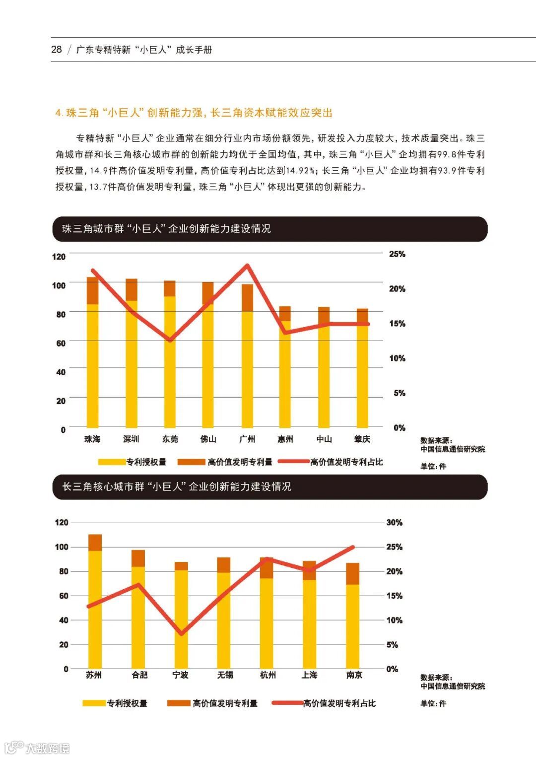 《广东专精特新“小巨人”成长手册》显示,广东 “小巨人” 企业共 1525家,深广莞佛四城占比超八成,深圳以 752 家领先。这些企业多为中等规模,成立11-20年,聚焦新一代信息技术、高端装备制造等战略新兴产业,平均专利 139 项超全国水平,但企业技术中心数量不及江浙。融资上,新三板是主要上市板块,深创投、粤科金融等为重要投资方,半导体、新能源汽车赛道最受青睐。企业需政府配置产业基金、开放数据场景,自身加速数字化转型与合规治理,盼被更多 “看见”。
